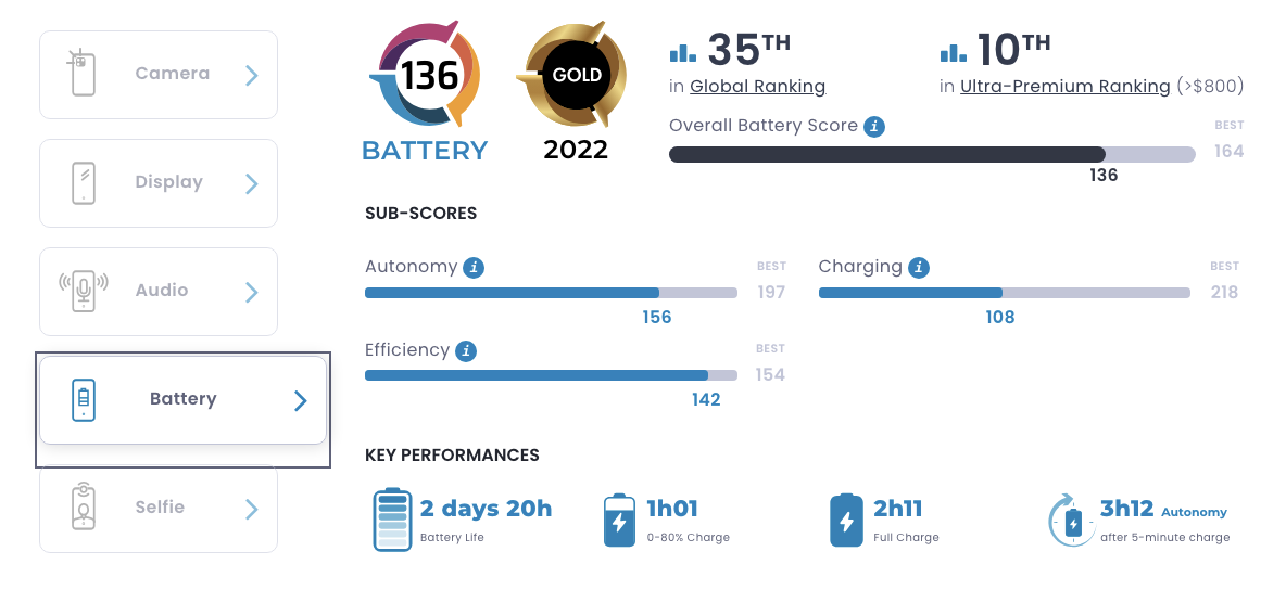DxOMark tarafından sağlanan verilere göre, en iyi batarya performansını sergileyen iPhone modeli, 136 puanla iPhone 13 Pro Max olarak belirlendi. İkinci sırada 134 puanla iPhone 15 Pro Max, üçüncü sırada ise 133 puanla iPhone 14 Pro Max bulunuyor.