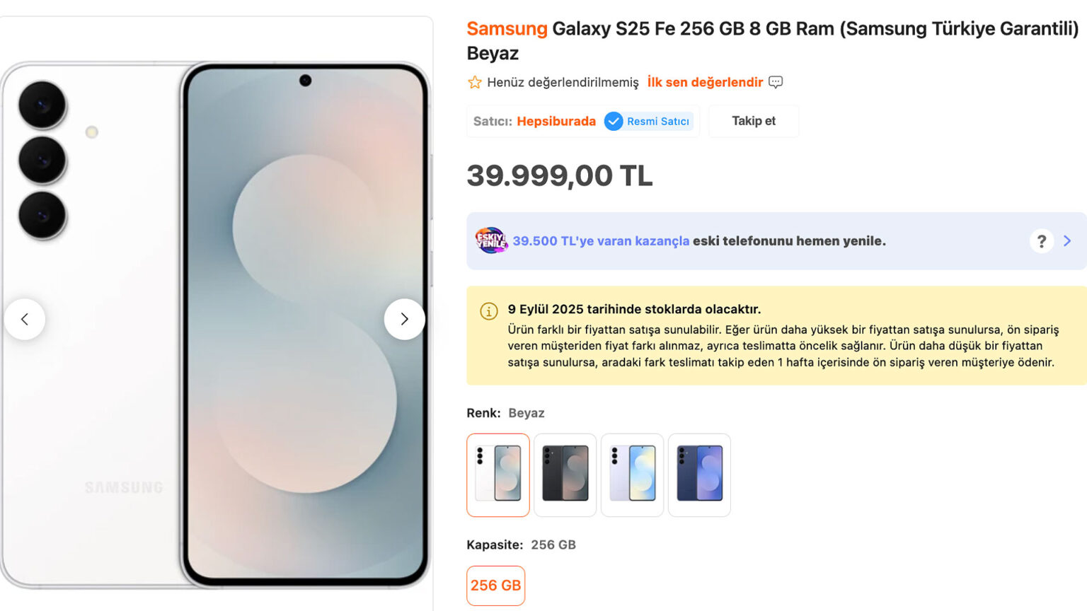Samsung, Fan Edition serisinin en son açıklanan modeli Galaxy S25 FE için Türkiye’deki ön sipariş sürecini başlattı. Önceki nesline göre önemli birçok iyileştirme sunan akıllı telefon, performans ve kamera özellikleri ile kullanıcıların dikkatini çekiyor. 8 GB RAM ve 256 GB depolama alanına sahip versiyonunun fiyatı 39.999 TL olarak belirlenirken, cihazın 9 Eylül tarihinde satışa sunulması bekleniyor.