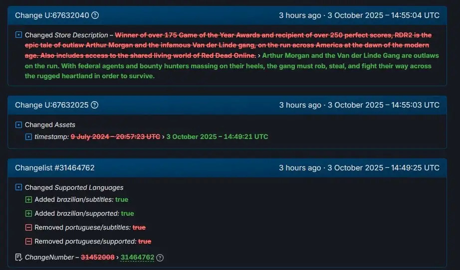 Söylentilerin tetiklenmesine neden olan durum, Twitter/X platformunda yer alan kullanıcı BeskInfinity’nin Red Dead Redemption 2’nin SteamDB girişindeki mağaza açıklamasında yapılan dikkat çekici değişikliği fark etmesiyle gerçekleşti. Eski metin, yalnızca ödülleri ve Red Dead Online erişimini öne çıkarıyordu. Ancak bu metin, daha derin ve tematik bir bakış açısıyla yeni bir tanımla güncellendi.